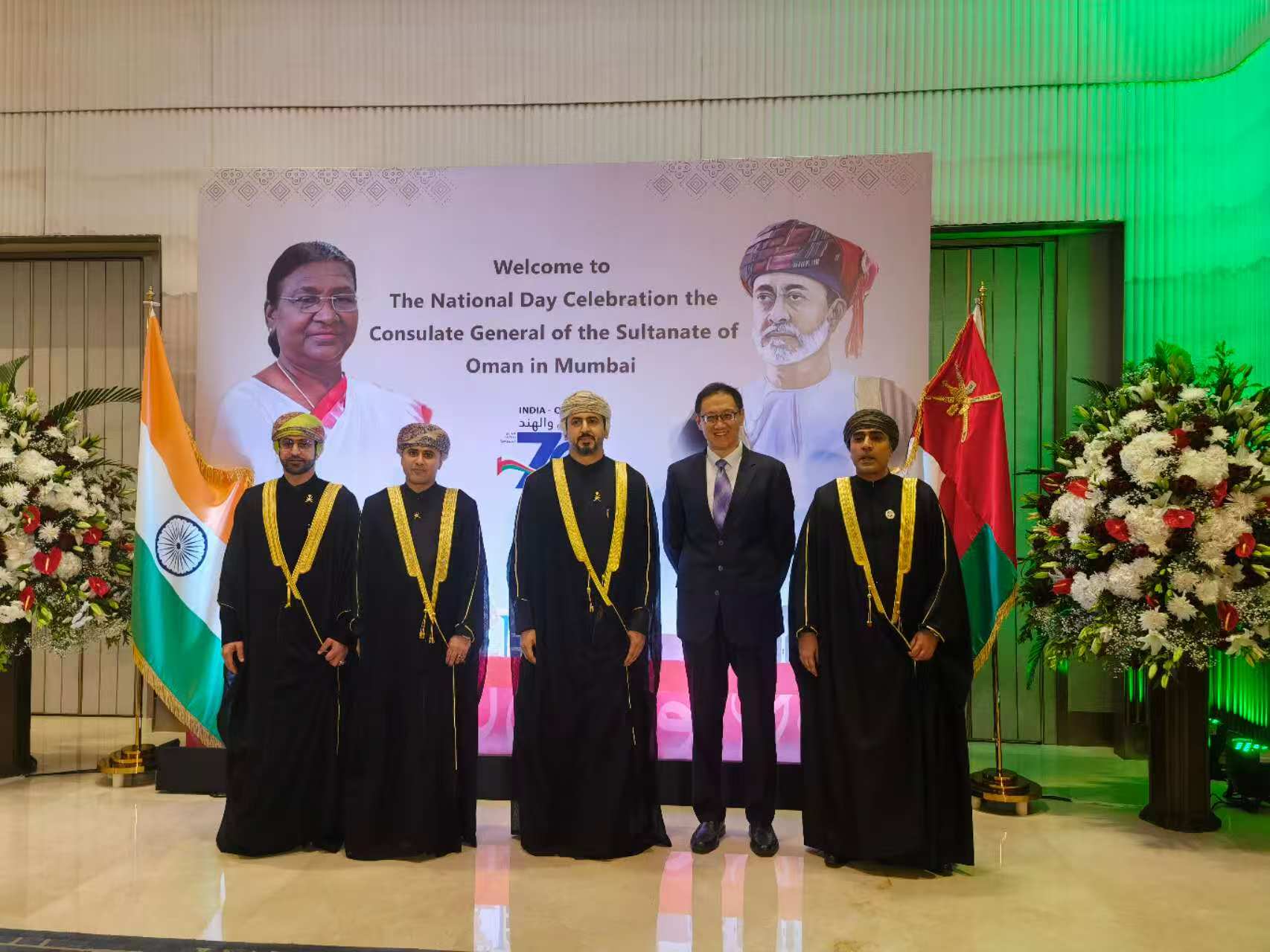 11月20日,张宏宇参赞衔领事应邀出席由阿曼王国驻孟买总领馆举办的国庆日招待会。办公室徐靖副领事,政新处随员朱雨倩随行。