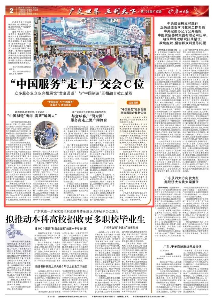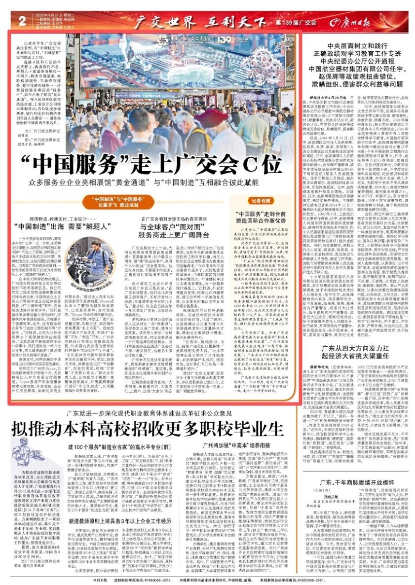 4月21日,广州日报刊发《“中国服务”走上广交会C位》,内容如下: