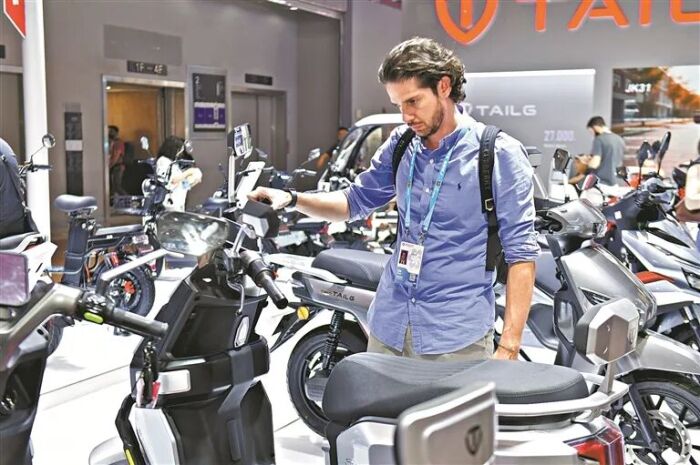 境外采购商在端详摩托车展品