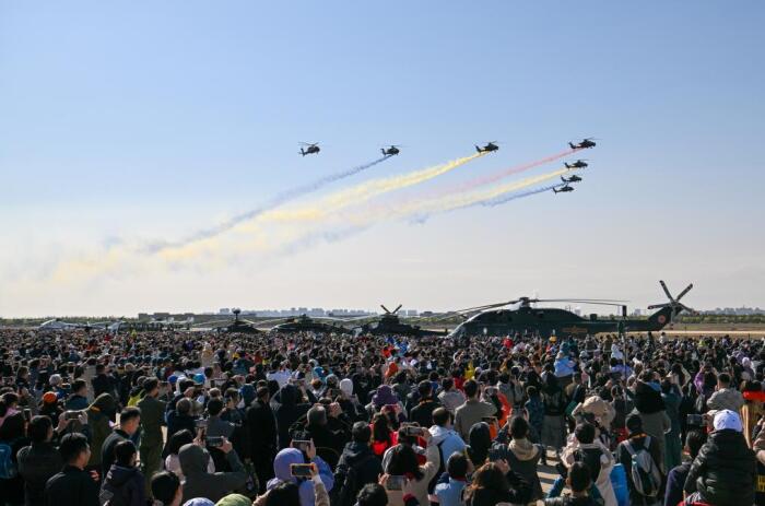 会场上空,伴随着阵阵轰鸣,直升机表演的“空中芭蕾”引起阵阵欢呼;展厅内部,造型酷炫的大型eVTOL(电动垂直起降飞行器)和观光用的“敞篷”小型直升机吸引观众驻足拍照……