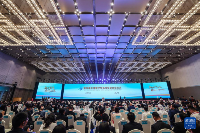 这是9月25日拍摄的第四届全球数字贸易博览会启动仪式现场。新华社记者 徐昱 摄