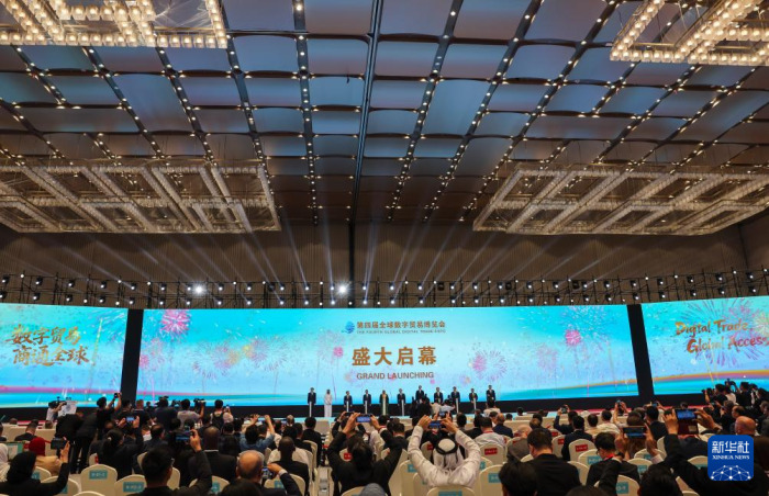 9月25日,中外嘉宾参加第四届全球数字贸易博览会启动仪式。新华社记者 徐昱 摄