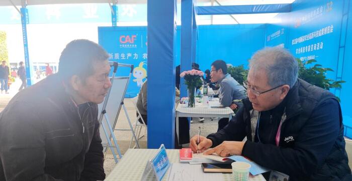 10月25日,小麦育种专家张正茂(右一)在杨凌农高会农业科技专家咨询活动现场。新华社记者姚友明 摄